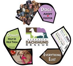 Available Dachshunds • Adoption Requirements/Fees • Adoption Application What is Fostering? • Foster Application • Foster Family Tools • Surrender a Dachshund DONATE to Nebraska Dachshund Rescue Make a Lifesaving Donation • Expenses Nebraska Dachshund Rescue - EVERYTHING ELSE CONTACT Info • EVENT Calendar • Dachshund FACTS Volunteer • Write a Happy Tail • Board of Directors Back Problems • Travel Tips • Size/Coat/Color |